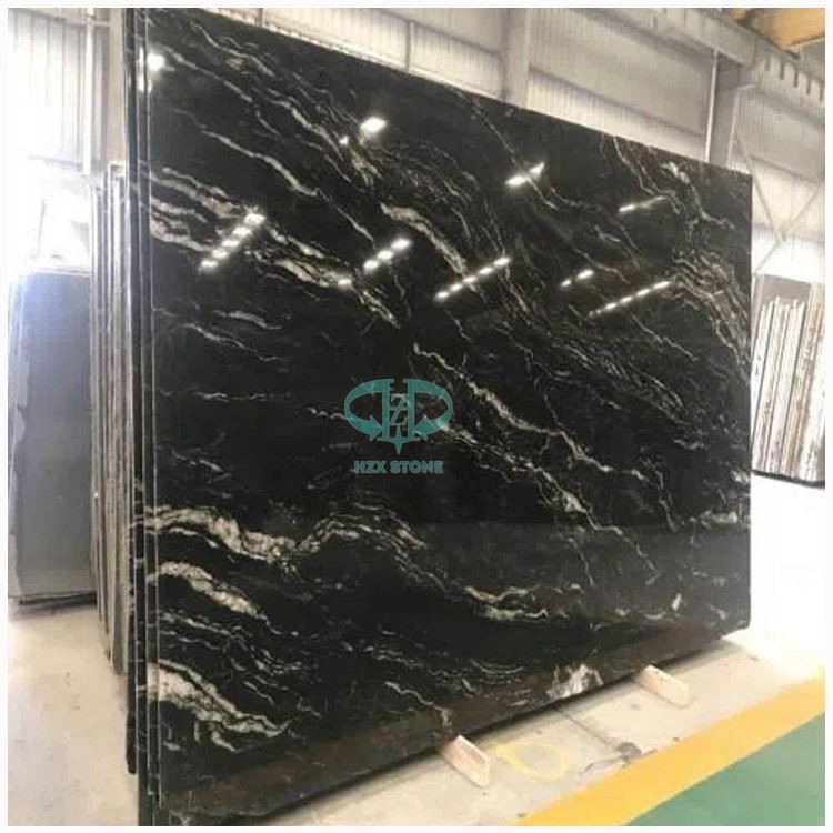 هذا البرازيل بلاك غرانيت سلاب هو جميل، الحجر الأسود المتدفقة التي من شأنها أن تجعل بيان في أي منزل. الخيال الأسود هو الأكثر ملاءمة لأسطح المطبخ، وعدادات الحمام، وتطبيقات الجدار.